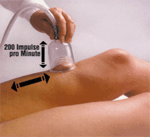KOSMETISCHER ANWENDUNGSBEREICH Die Schröpfmassagegeräte bringen verblüffende Erfolge im kosmetischen Bereich. Die Stoffwechselaktivierung der Gewebezellen bewirken eine Runderneuerung des Gewebes. Das kosmetische Schröpfen hat sich bestens bewährt zur Fettzellenverbrennung, Gewebestärkung und Faltenglättung. Saugwellenmassage im Gesichtsbereich Viele Menschen neigen von ihrer Veranlagung her zur Bindegewebsschwäche. Dann hat das Gewebe wenig Festigkeit und Elastizität. Aber auch ohne Vererbungsfaktor verliert die Haut im Laufe des Lebens seine natürliche Vitalität und Spannkraft. Dann kommt es im Gesichtsbereich zu verstärkter Faltenbildung, zu Tränensäcken, zum Doppelkinn, zu roten Äderchen und/oder blassem, fahlem Hautbild. Mit den Glocken wird die Zirkulation von Blut- und Lymphfluss wieder angeregt, der Gewebsstoffwechsel stark aktiviert. Dann kann die Haut die vorhandenen Vitamine und Mineralien wieder verstärkt und besser aufnehmen und verwerten. Die Haut regeneriert und zeigt sich strahlend und verjüngt. Saugwellenmassage in der Cellulitebehandlung Cellulite entsteht durch vergrößerte Fettzellen. Erst seit Neuestem weiß man, dass auch Wasseranteile und die Gewebeverschlackung eine Rolle spielen und an der Entwicklung der Cellulite mitbeteiligt sind. Dadurch kommt es im Laufe der Jahre zu Veränderungen der Unterhautgewebestruktur. Durch den Druck der vergrößerten Fettzellen wird der Blut- und Lymphfluss erschwert. Dadurch ist in den betroffenen Regionen der Stoffwechsel gestört. Nährstoffe und Sauerstoffversorgung werden geringer, der Abtransport von Stoffwechselschlacken behindert. Das führt zur Veränderung der Beschaffenheit des Bindegewebes, in das die Fettzellen eingebettet sind. Die Folge sind tastbare verhärtete Knötchen. Die immer größer werdenden Fettzellen drücken auf die Oberhaut und werden als Orangenhaut sichtbar. Je schwächer das Bindegewebe ist, umso früher tritt dieses Phänomen auf. Die Fetteinlagerungen und Gewebeveränderungen können nur verhindert werden, wenn der Stoffwechsel funktioniert. Nur dann laufen Ernährungs- und Entgiftungsfunktionen störungsfrei ab. Ziel der Saugwellenmassage ist, die Fetteinlagerungen, Wasseransammlungen und Schlackenstoffe im Gewebe zu lösen. Mit Hilfe von Unterdruck wird der Gewebestoffwechsel wirksam angeregt, Fettzellen entleert und die Haut gestrafft und geglättet. Erfolge der kosmetischen Schröpfmassage ° Stärkung und Straffung der Gewebestrukturen (z.B. bei Bindegewebsschwäche, nach Gewichtsverlust, nach Schwangerschaften) ° Cellulite ° Faltenglättung ° Tränensäcke ° Gewebestraffung bei Doppelkinn ° Fettpölsterchenreduktion ° Schwangerschaftsstreifen ° Narbenbehandlung ° zur Unterstützung bei Diäten